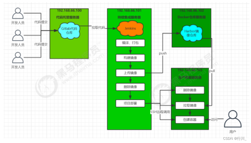 3、Jenkins发送SSH远程命令,让生产部署服务器到Harbor私有仓库拉取镜像到本地,然后创建容器。