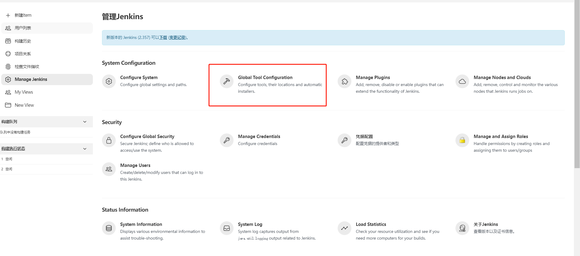 1、安装汉化插件:Manage Jenkins->Manage Plugins->在"available"tab列搜索"Chinese"->下载后重启