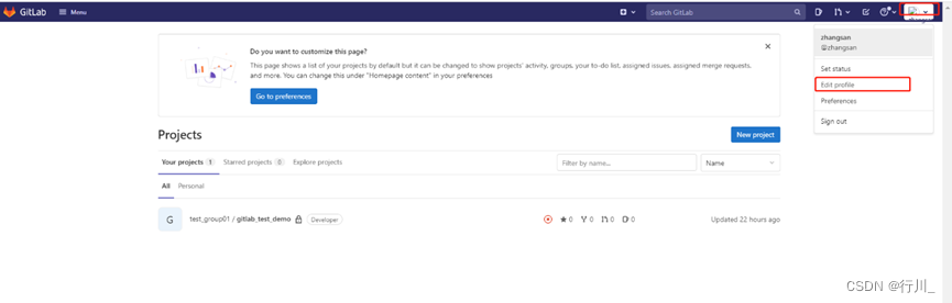 - 更改密码:gitlab的初始密码存储在 /etc/gitlab/initial_root_password下