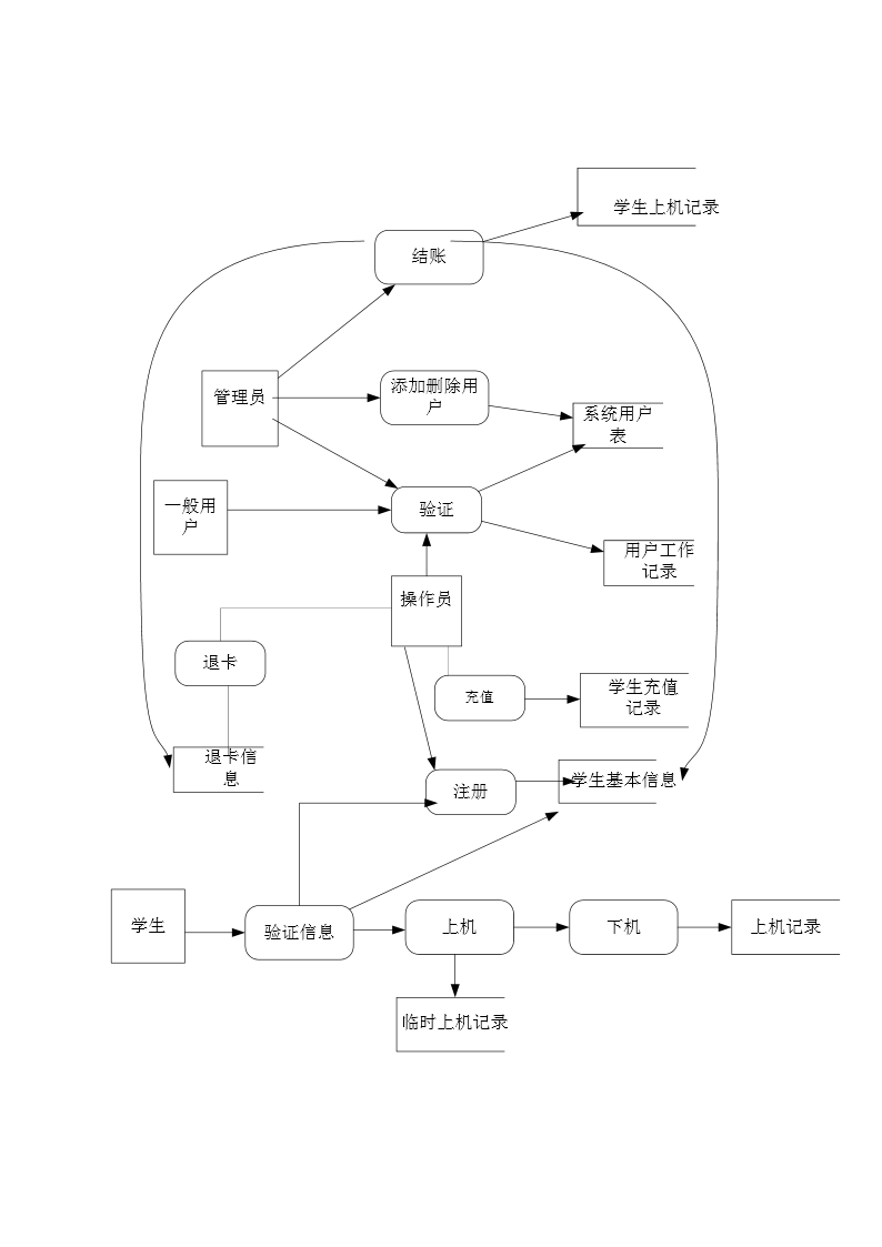 下面便是我对机房收费系统的一张数据流图,仅仅是对大家做个参考。