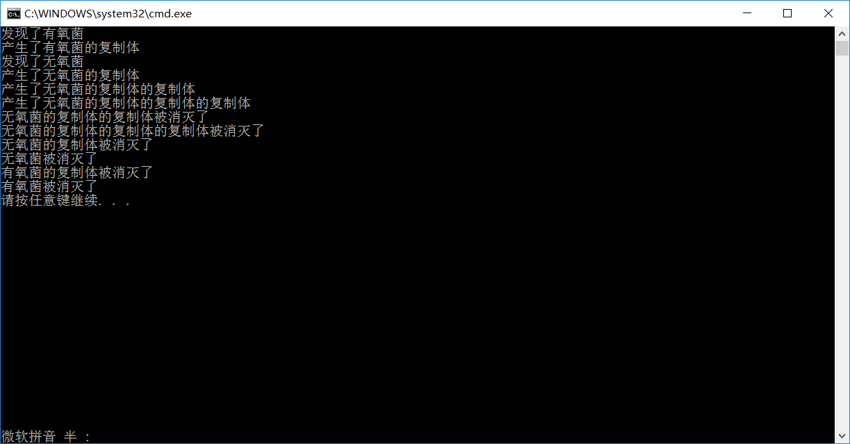 //注意,调用copygerm后,copygerm会立即被释放,所以会立即放出析构函数,输出(无氧菌的复制体的复制体被消灭了)