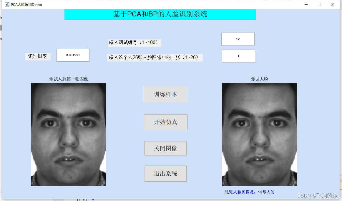 【毕业设计系列】052:基于PCA和BP神经网络的人脸识别系统【含Matlab源码】 在之前大学毕业设计中实现了基于PCA和BP神经网络的人脸识别系统,采用matlab语言,并且使用了GUI界面呈现,准确率达到了82%以上。需要相关代码可以加文章最后的QQ名片咨询博主。FaceRecognitionByBPneuralnetwork.m:采用BP神经网络的人脸识别的训练主程序。