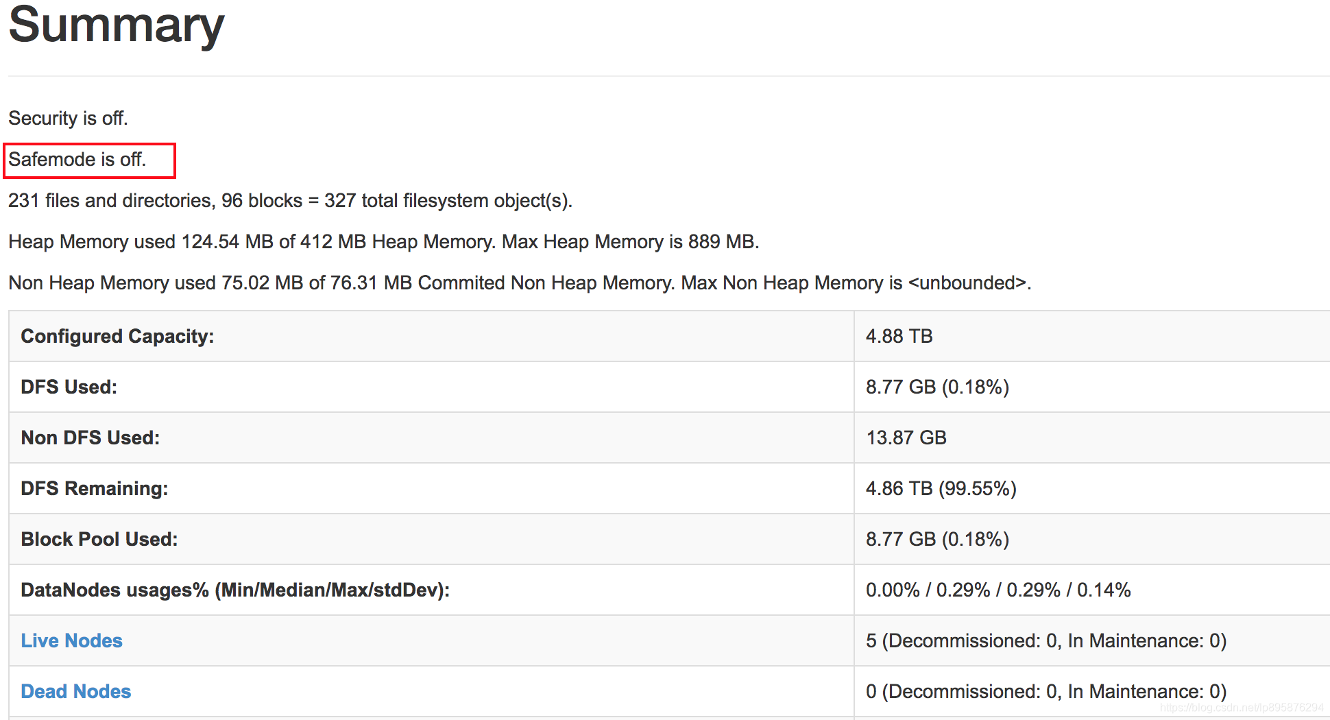 - NameNode监听DataNode的心跳请求,在此期间NameNode一直处于安全模式。