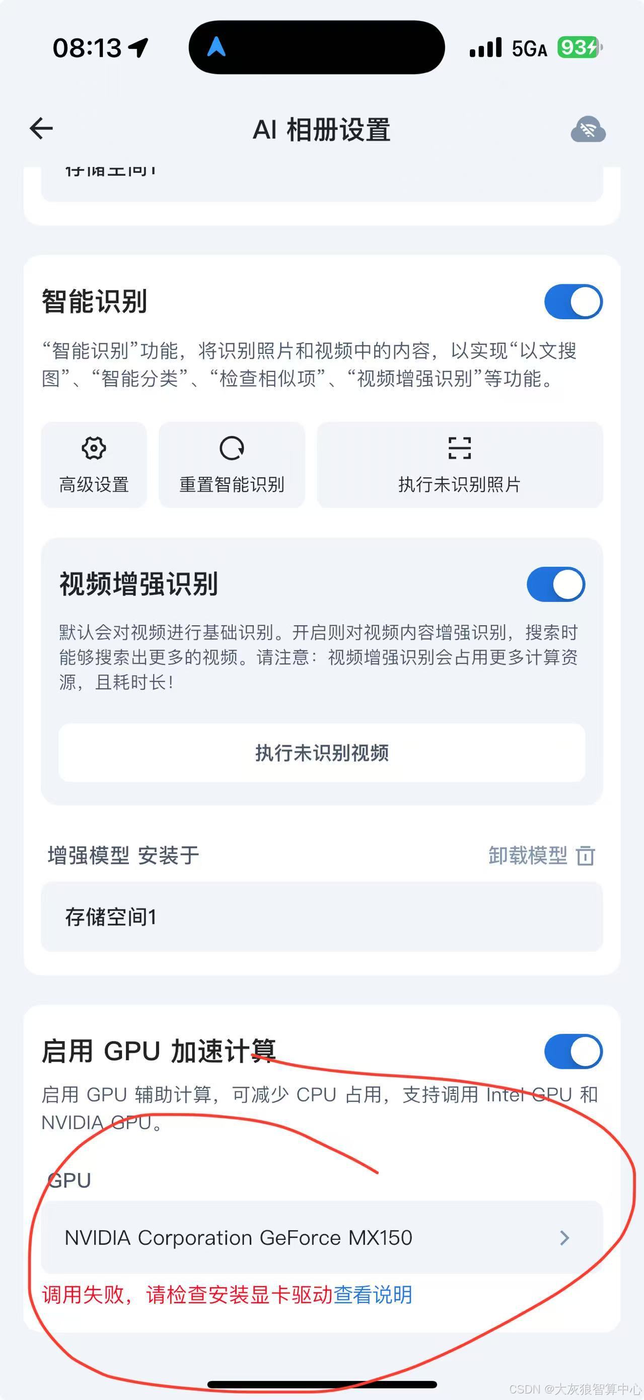 一、手上有一台旧的笔记本电脑,安装了飞牛NAS,在相册调用过程中遇到了不能使用NV MX150对的显卡的问题