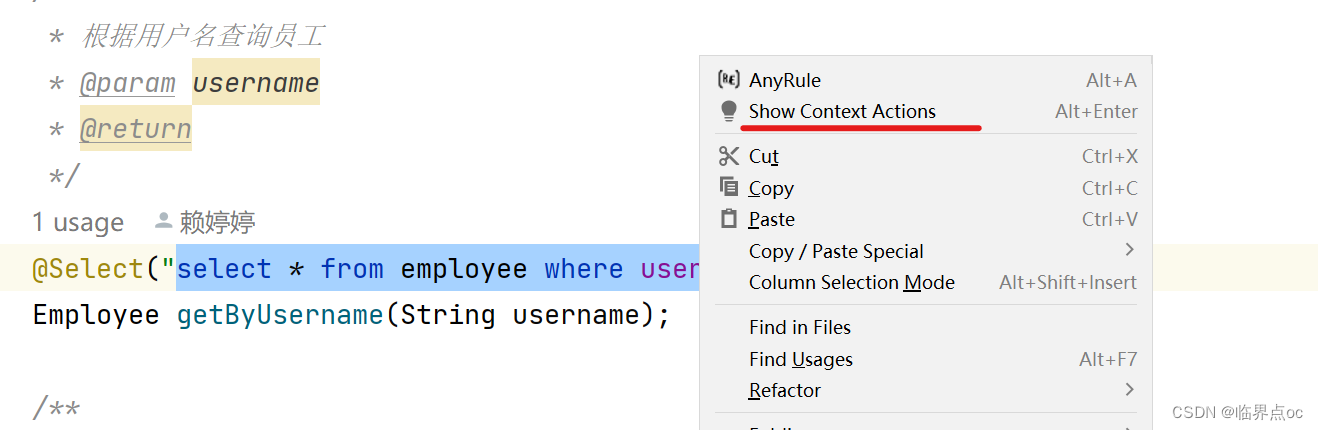 1. 选中SQL语句,右键选择“show Context Actions”,然后点击“Uninject language or reference”,然后选择“MySQL”。
