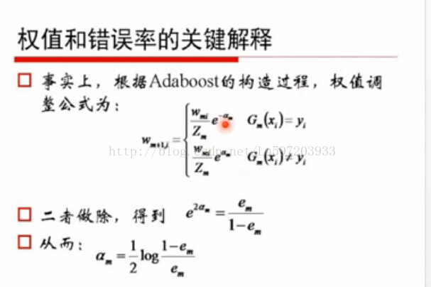 alpha = float(0.5 * log((1.0 - error)/max(error, 1e-16))) #确保在没有错误时不会发生除零溢出