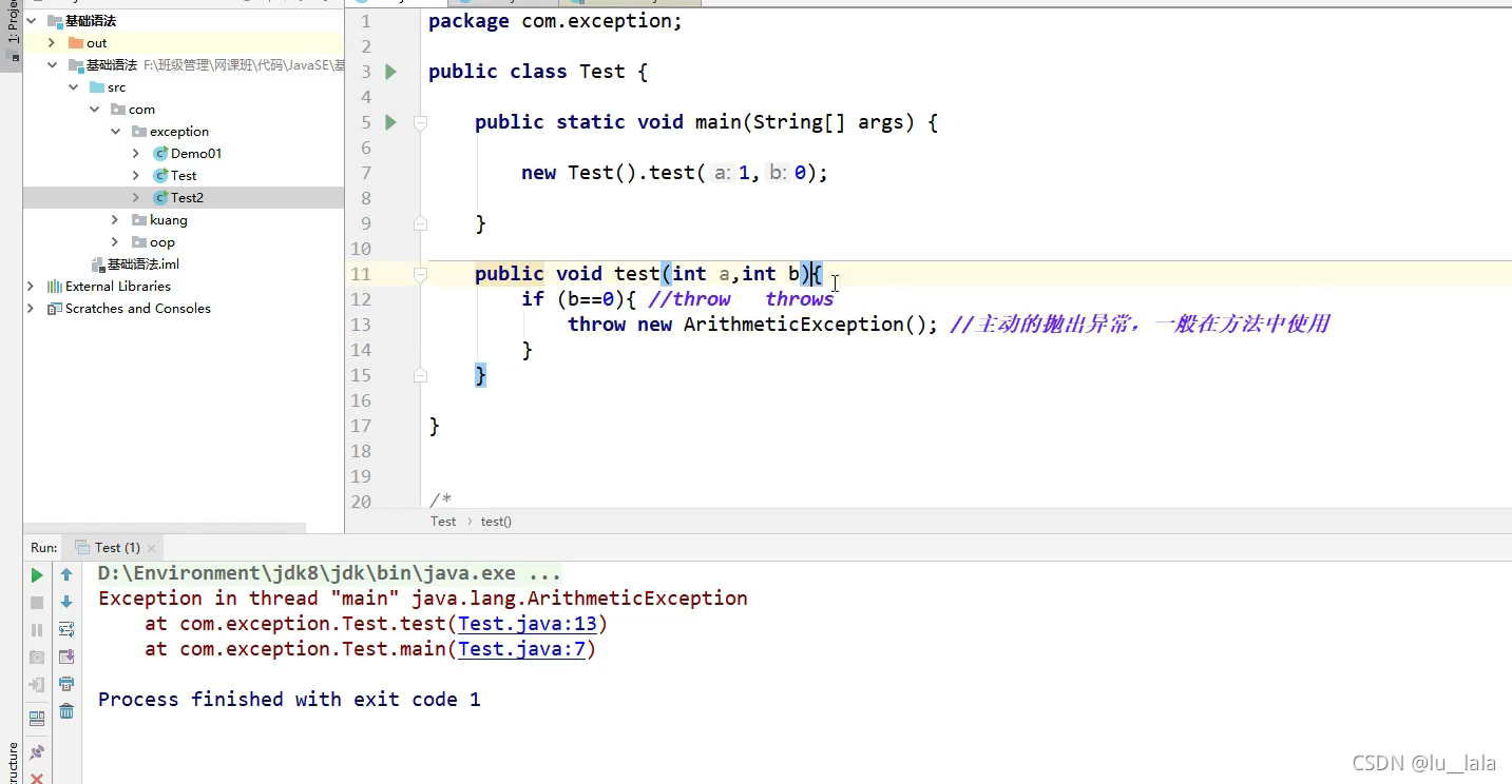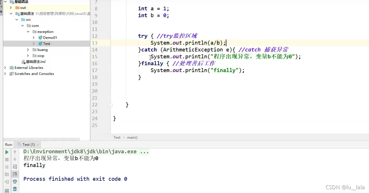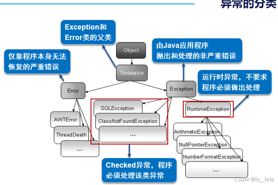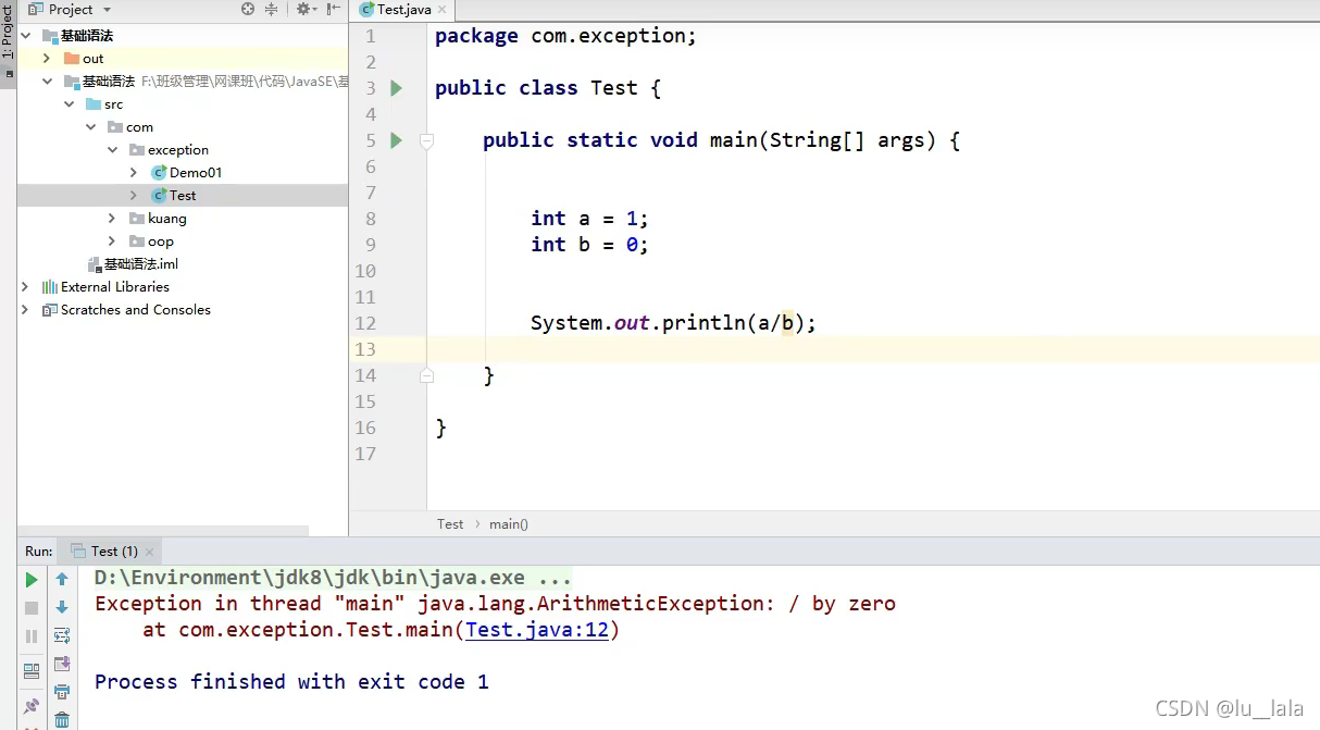 1.异常 Exception:是指程序运行中出现的不期而至的各种情况