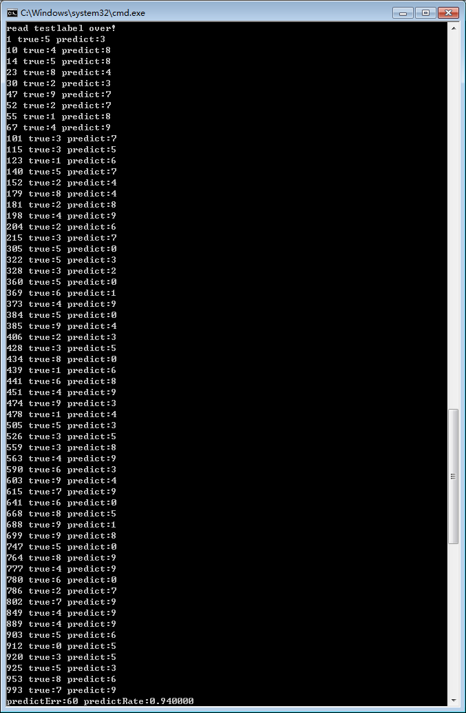 手写字符识别,5000个样本,10个类1000个测试。正确率94%。