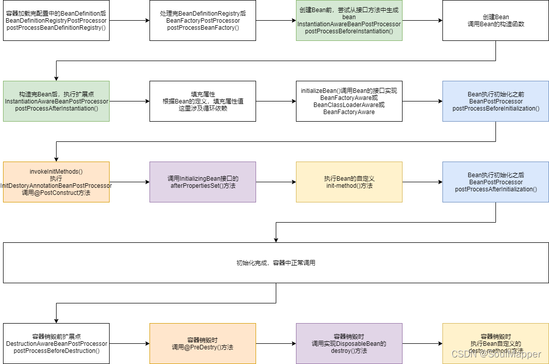 Spring Bean的生命周期,以及如果解决循环依赖的问题;当循环依赖需要创建代理的时候,如果解决循环依赖的