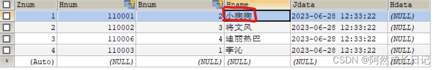 修改borrow表中的Hname字段,当中值为‘王花花’的这一行,修改为‘小狗狗