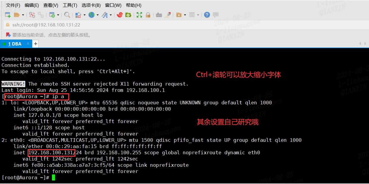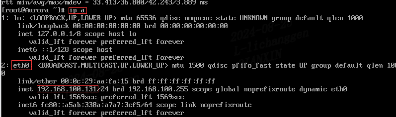 1.在虚拟机登录后输入ip a,可以看到该虚拟机的ip地址
