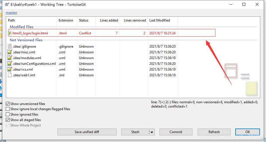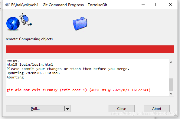 1.问题描述 我拉取最新的代码然后在本地开发,改完bug后,我先pull拉取一下最新代码,发现拉取报错如下: 2.解决方案 第一步:先将本地代码暂存一下,操作如下: 第二步:再次pull拉取一下最新代码,操作如下: 第三步:恢复刚才暂存的代码,找到冲突的文件,操作如下: 第四步:将冲突的文件改好,标记冲突已解决,然后提交并push即可。操作如下: