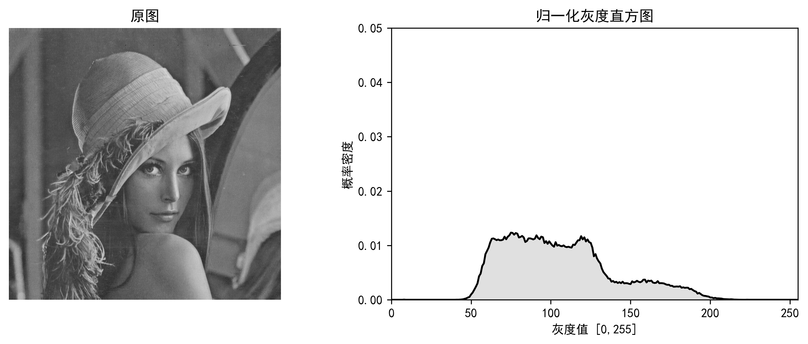 下图是一张灰度图像与其对应的归一化灰度直方图