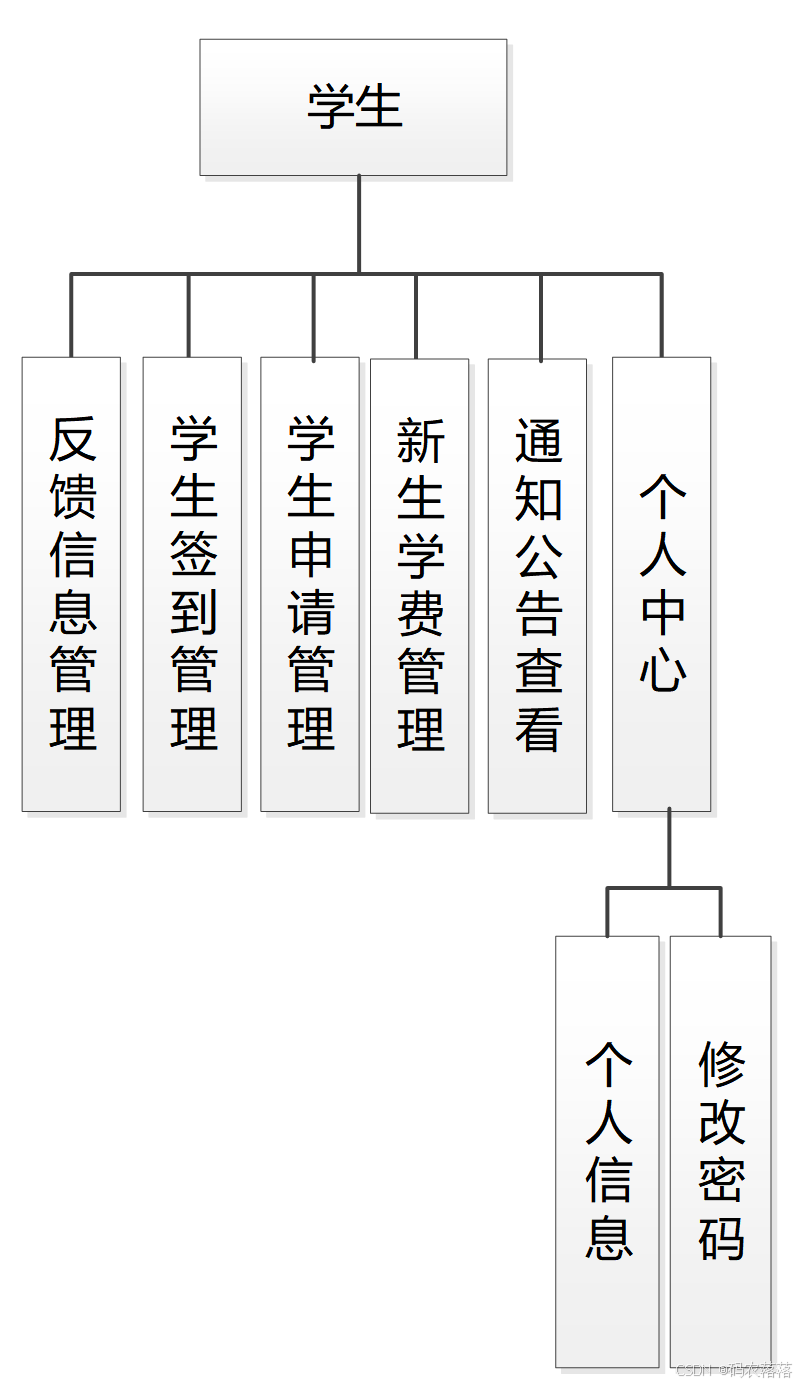 该系统可以实现学生管理,通知公告管理,新生学费管理,学生申请管理,学生签到管理,反馈信息管理等功能。