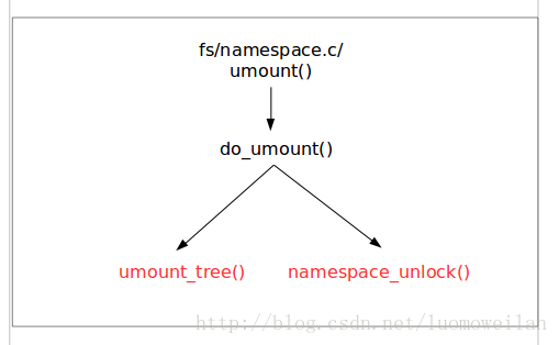 下图描述了主要的函数调用关系,linux卸载文件系统主要分为三个阶段: