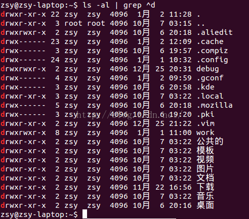 ls -al | grep ^d:显示当前目录下所有的目录文件。
