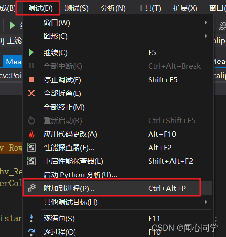 【VS调试】1.0-本地代码附加到软件进程进行调试(VS2019) 当运行的exe程序调用了某个dll,想要调试dll中的代码,则可按照以下两个步骤,将需要调试的代码项目附加到已运行的程序即可在代码项目中进行打断点等代码调试工作。