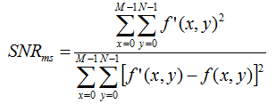 均方信噪比:可以把压缩后的图像f'理解为原图像f和一个噪声信号e的和产生; 即f'=f+e;则图像f'的均方信噪比SNR_ms如下