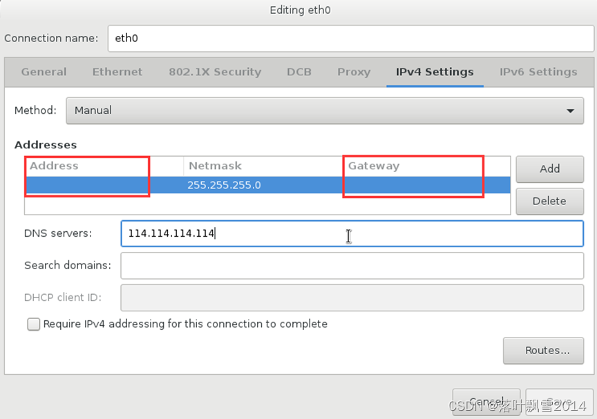网络配置修改成Manual手动的,并填写相应的ip地址