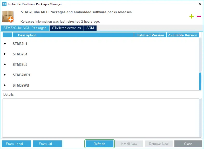 转到“STMicroelectronics”选项卡。 滚动直至找到“X-CUBE-TOUCHGFX”,然后展开节点。 点击“Tou