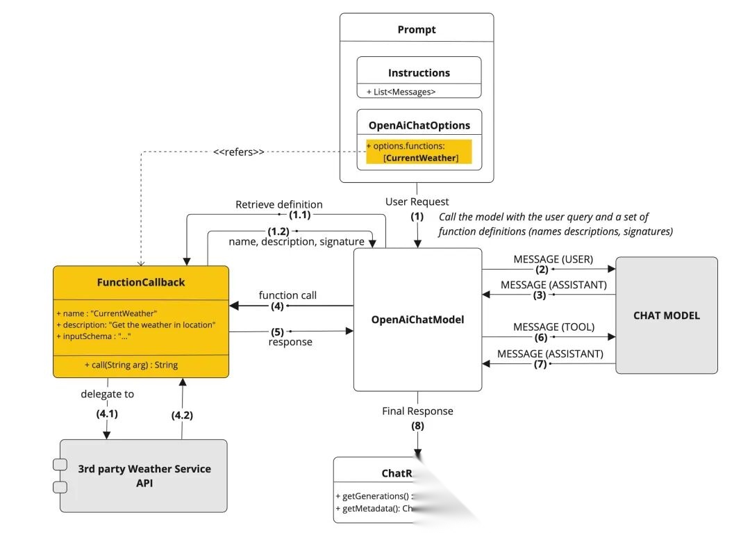 Final Response Generation),LLM接收到函数执行的结果后,会将其作为新的信息源。模型会整合原始的用户问题、自身的推理过程以及函数的返回数据,最终生成一个通顺、连贯且内容丰富的自然语言回复,呈现给用户。