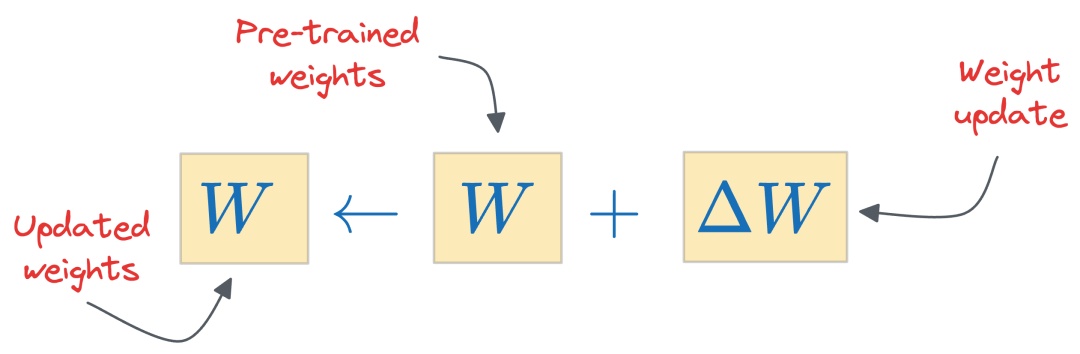 在微调过程中, 我们首先需要得到权重 W更新的变化量,即ΔW