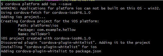 $ cordova platform add ios --save