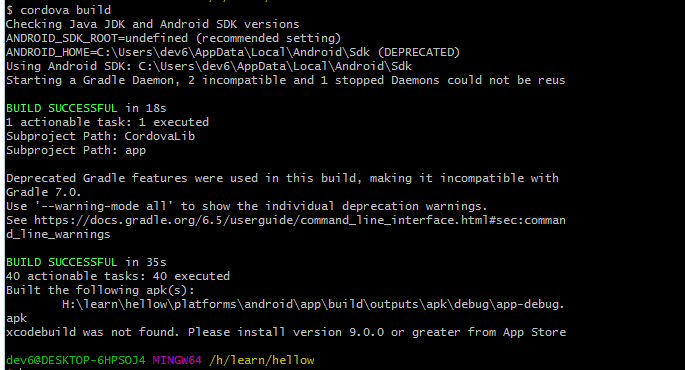 build 成功之后,就会在 H:\learn\hellow\platforms\android\app\build\outputs\apk\debug\app-debug.apk 对应的目录下找到build 好的apk文件