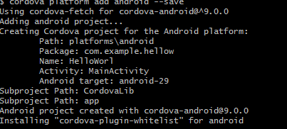 $ cordova platform add android --save