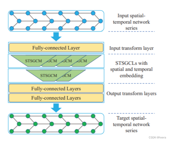 STGCN时空图卷积网络:用于交通预测的深度学习框架 提出了一种新的深度学习架构——时空图卷积网络,用于交通预测任务。该架构包括几个时空卷积块,它们是图卷积层[Defferrard等人,2016]和卷积序列学习层的组合,以建模空间和时间依赖性。据我们所知,在交通研究中应用纯卷积结构同时从图结构时间序列中提取时空特征尚属首次。我们在两个真实世界的交通数据集上评估我们提出的模型。实验表明,该框架在具有多个预估长度和网络规模的预测任务中性能优于现有的基线。