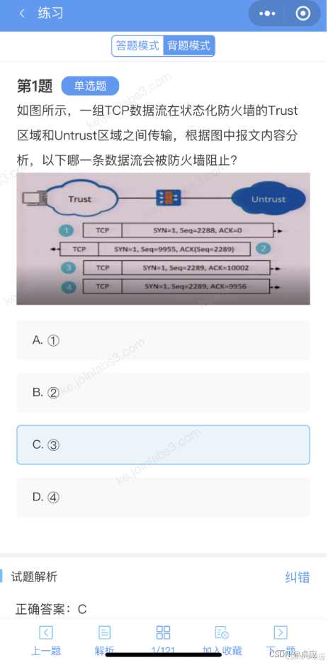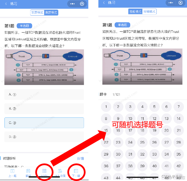 6.连续刷题,可直接通过底部菜单【下一题】或题题目序号随机选择