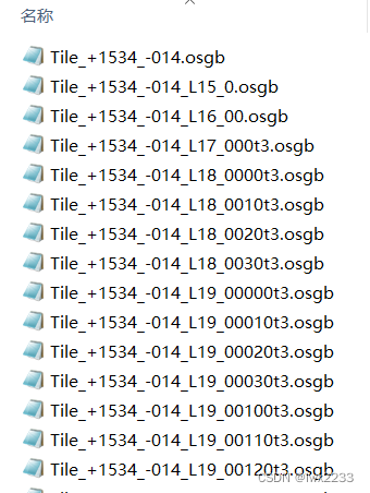 每个瓦片文件夹中又存放有不同层级的osgb文件
