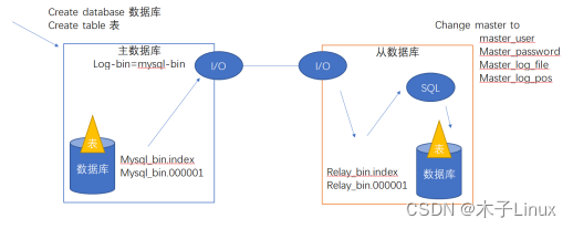 主数据库服务器执行使数据库结构发生改变的sql语句时,触发I/O线程,向从数据库服务器传输二进制日志,从数据库服务器接收到二进制日志后,将其改名为relay_bin.index和relay_bin.000001中继日志,当获取完所有的二进制日志文件后,I/O线程会自动休眠,以减少资源消耗,同时,会唤醒sql线程,sql线程会将中继日志转为数据库内容。
