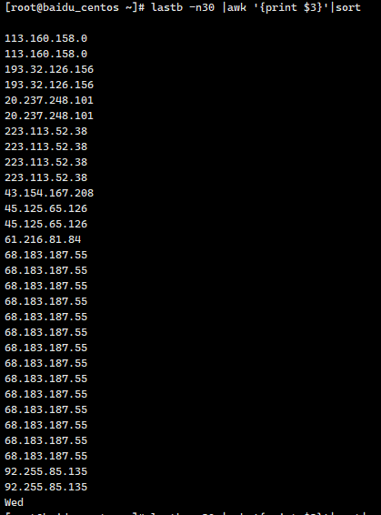 执行lastb -n 30就列出了登录失败的最后30条记录