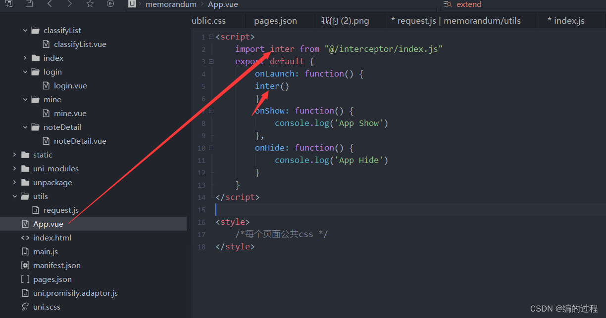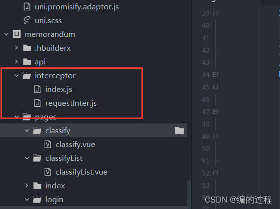 然后在requestInter.js敲如下代码--注意自己的路径!