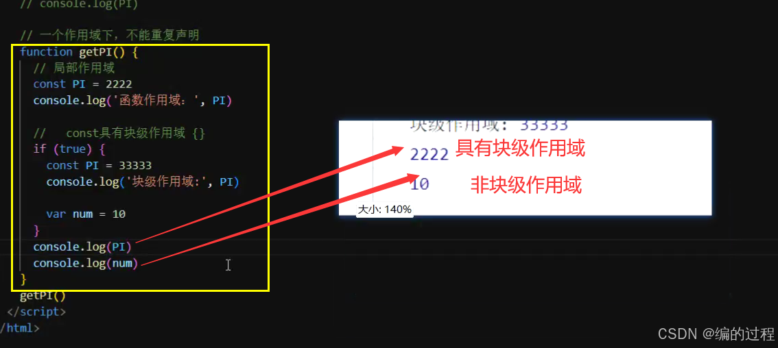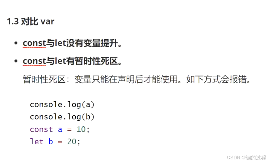 同个作用域不能声明多次!但可以多次赋值!也具有块级作用域