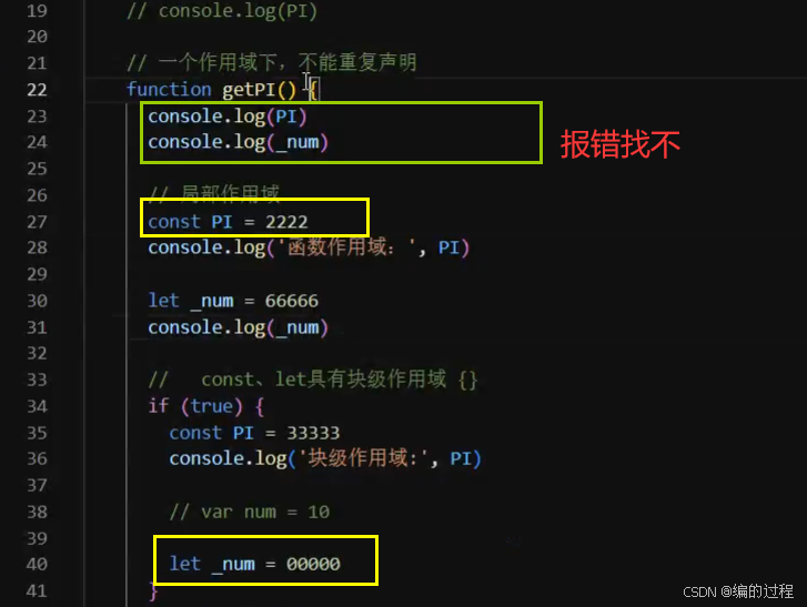 同个作用域下:只能声明一次并且必须赋值,不能被再次修改赋值。
