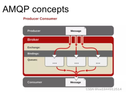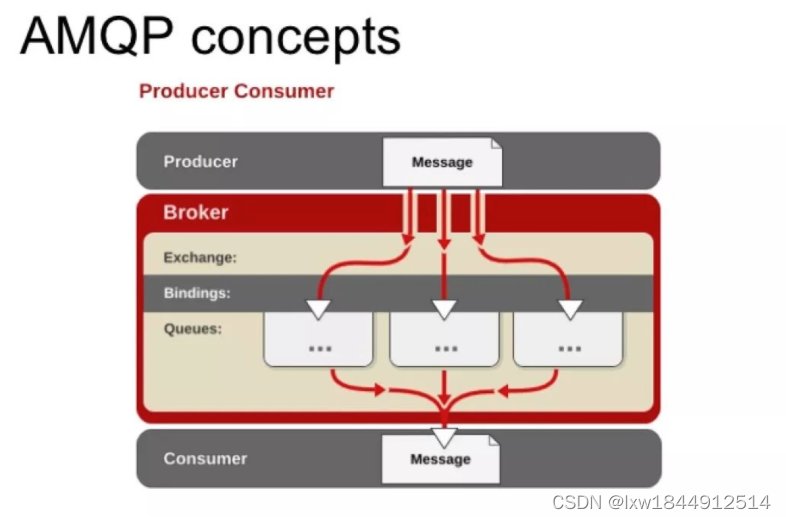 从 AMQP 协议可以看出,Queue、Exchange 和 Binding 构成了 AMQP 协议的核心