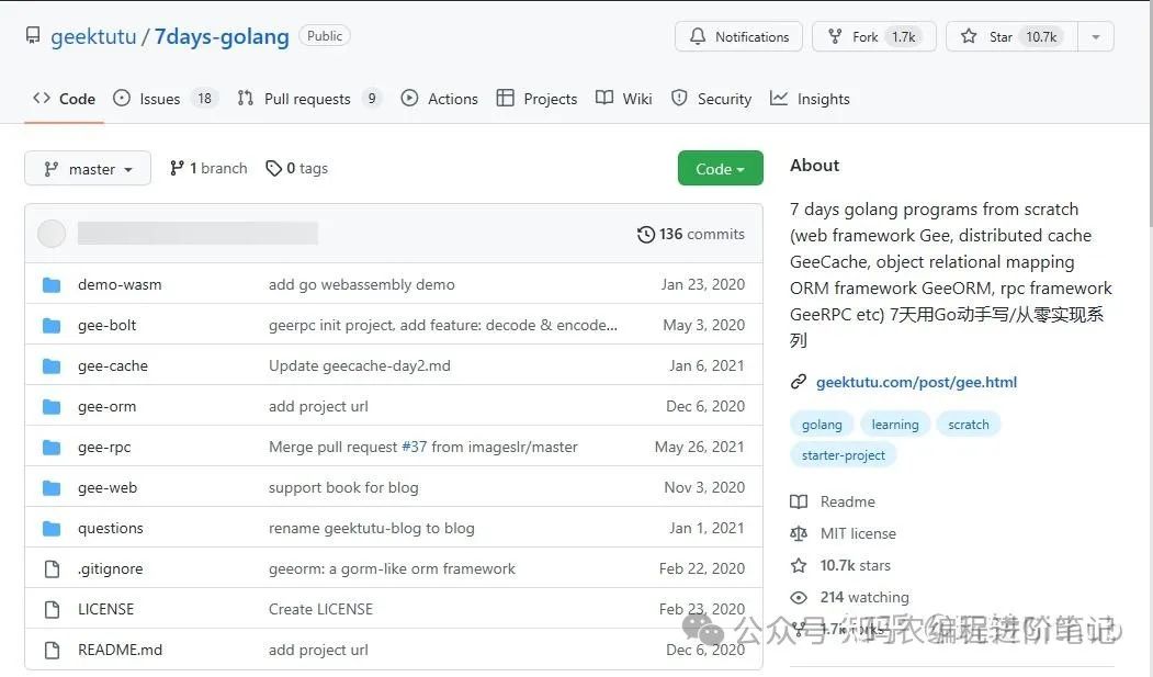 1、Anniehttps://github.com/iawia002/annieGo 编写的下载快速、使用简单、程序纯净的视频下载工具。支持哔哩哔哩、YouTube 等视频网站。可作为前段时间被封禁:youtube-dl 的替代品(目前已重新上架),它真的很强大!先感受下 annie 带来的便利,可能就有兴趣去探究它的源码啦。0、7days-golanghttps://github.com/geektutu/7days-golang7天用Go动手写/从零实现系列 。用 Go 分别写一个:Web 框架、分布式缓存、ORM 框架、RPC 框架的实战教程。