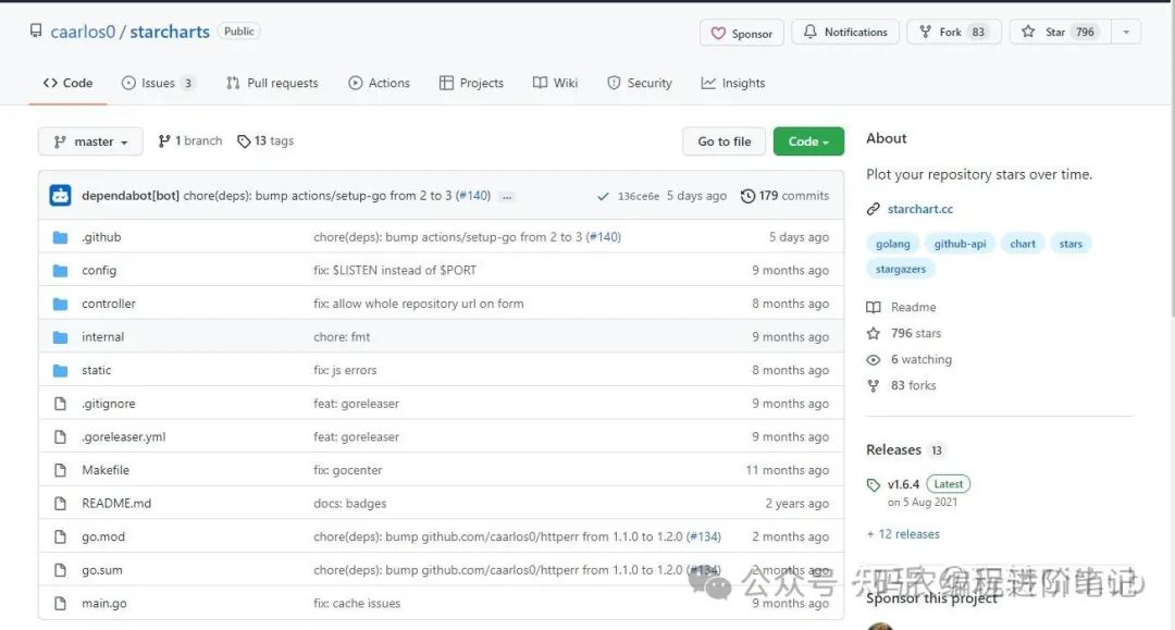 这个项目是通过可视化的方式展示 GitHub 上 star 的增长曲线,也就生成是“星图”。推荐这个项目主要是运行简单和直观的数据可视化,可以快速地感受到 Go 开源项目带来的便利。