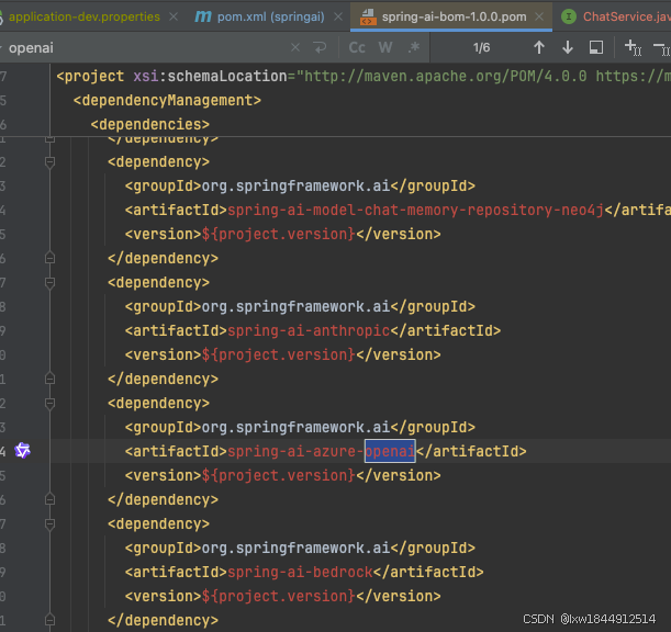 - openAiChatModel: defined by method 'openAiChatModel' in class path resource [org/springframework/ai/model/openai/autoconfigure/OpenAiChatAutoConfiguration.class]