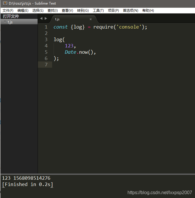 验证是否生效,打开一个 .js 为后缀的文件编辑, Ctrl + b 运行脚本,输出结果符合预期。