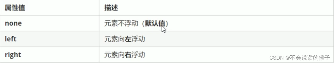 float属性用于创建浮动框,将其移动到一边,直到左边缘或右边缘触及包含块或另一个浮动框的边缘。