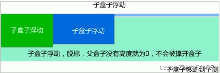 一个盒子里面有多个子盒子,如果其中一个子浮动了,那么其他兄弟也应该浮动,以防止引起问题。浮动的盒子只会影响浮动盒子后面的标准流,不会影响前面的标准流。