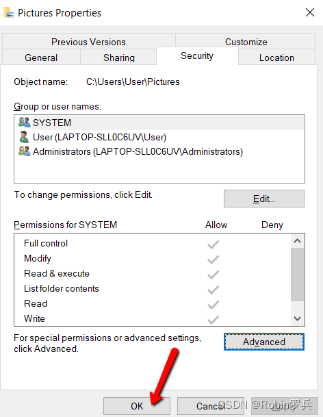 查看当前文件夹的所属用户和安全标识符(SID)