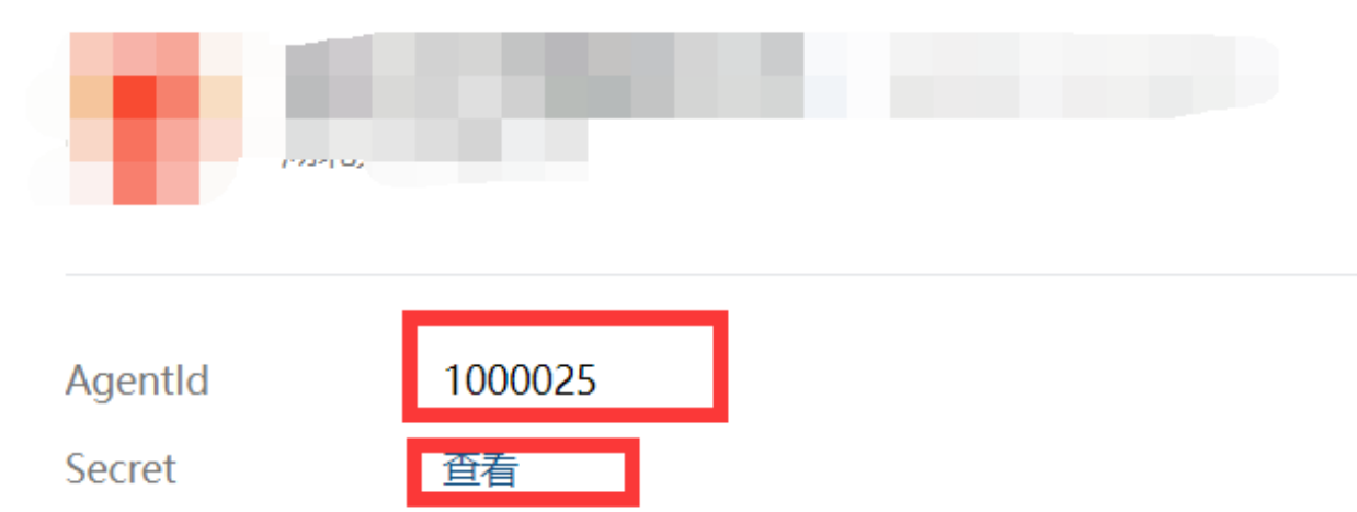 记录企业微信应用信息:在应用管理页面点击刚刚创建好的应用,进入应用详情页面。记录这里的 AgentId 和 Secret(需要点击获取按钮,在企业微信聊天窗口里面获取),分别为WXWORK_AGENTID和WXWORK_CORPSECRET。