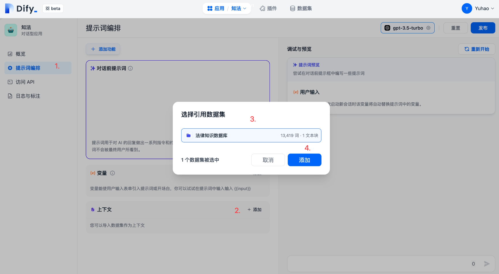 这一章节将会介绍如何创建一个法律知识的数据集,并将数据集和应用关联起来。