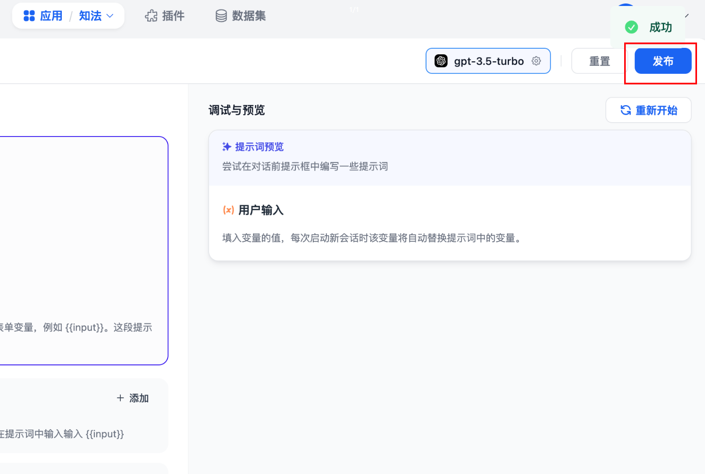发布模型:完成关联数据集后,点击页面右上角的“发布”,使模型生效。