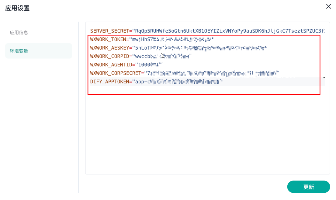 添加环境变量:从第二行开始,将上面步骤中收集到的所有内容全部粘贴到这里,点击更新。