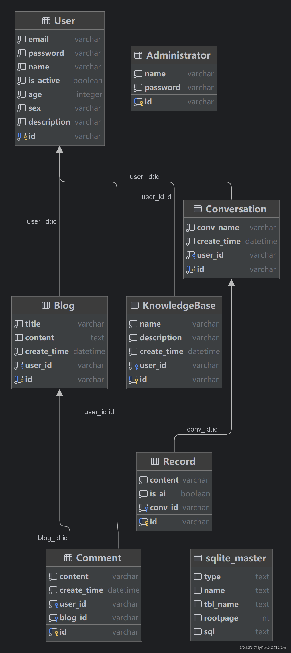 假设现在一个用户(User)有多个与大模型的会话(Conversation),那么显然Conversation表中应该包含对应于用户表主键的外键(例如,User.id)。依赖管理机制可以显式地管理这种一对一、一对多、多对一、多对多的依赖。
